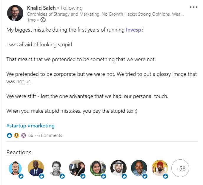 Start showing your human side. Your audience will likely respond more positively to the personality behind your brand.