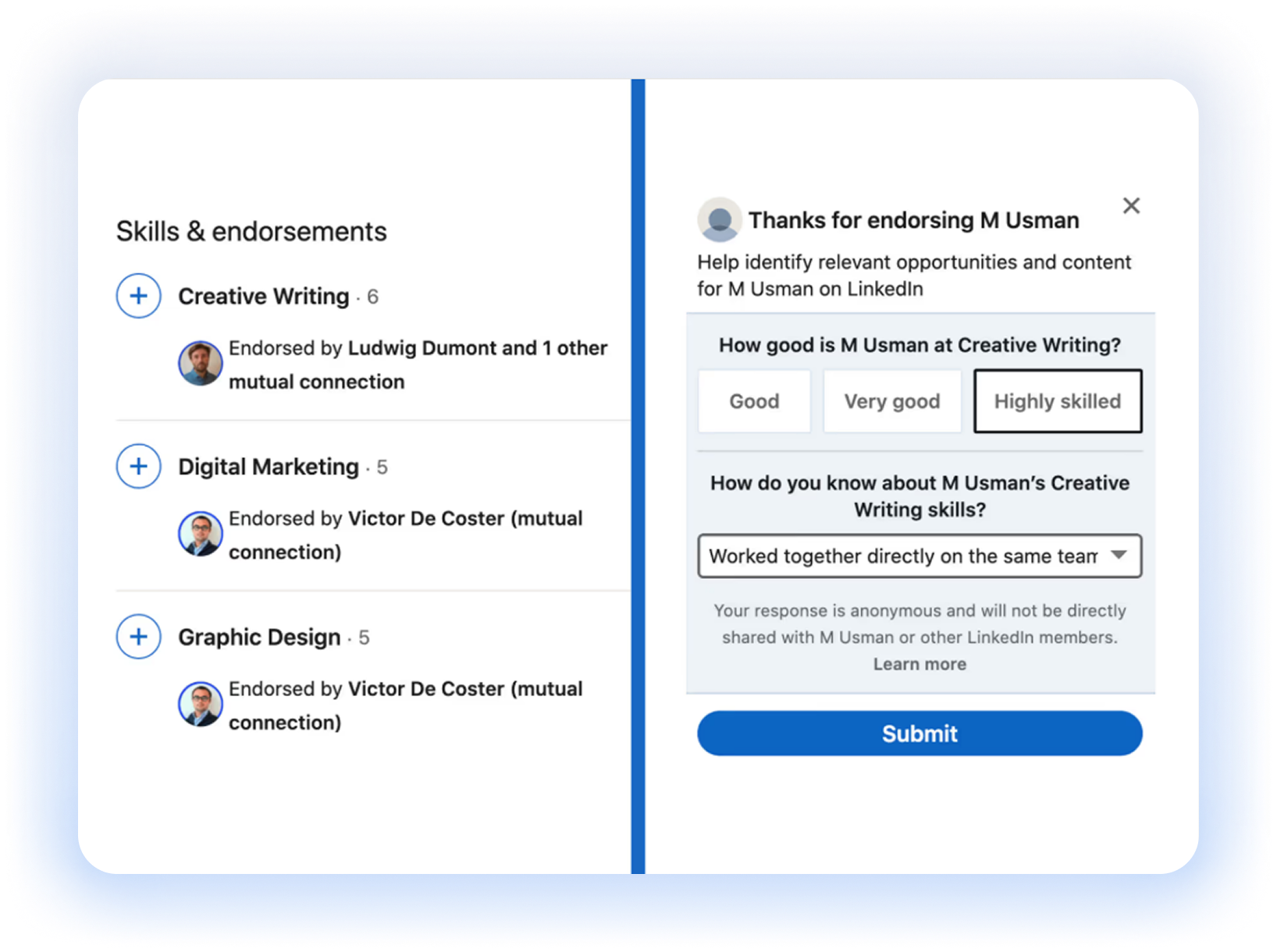 Be sure to choose skills that you know your connection has and that you have personally experienced. Here is how to do this: