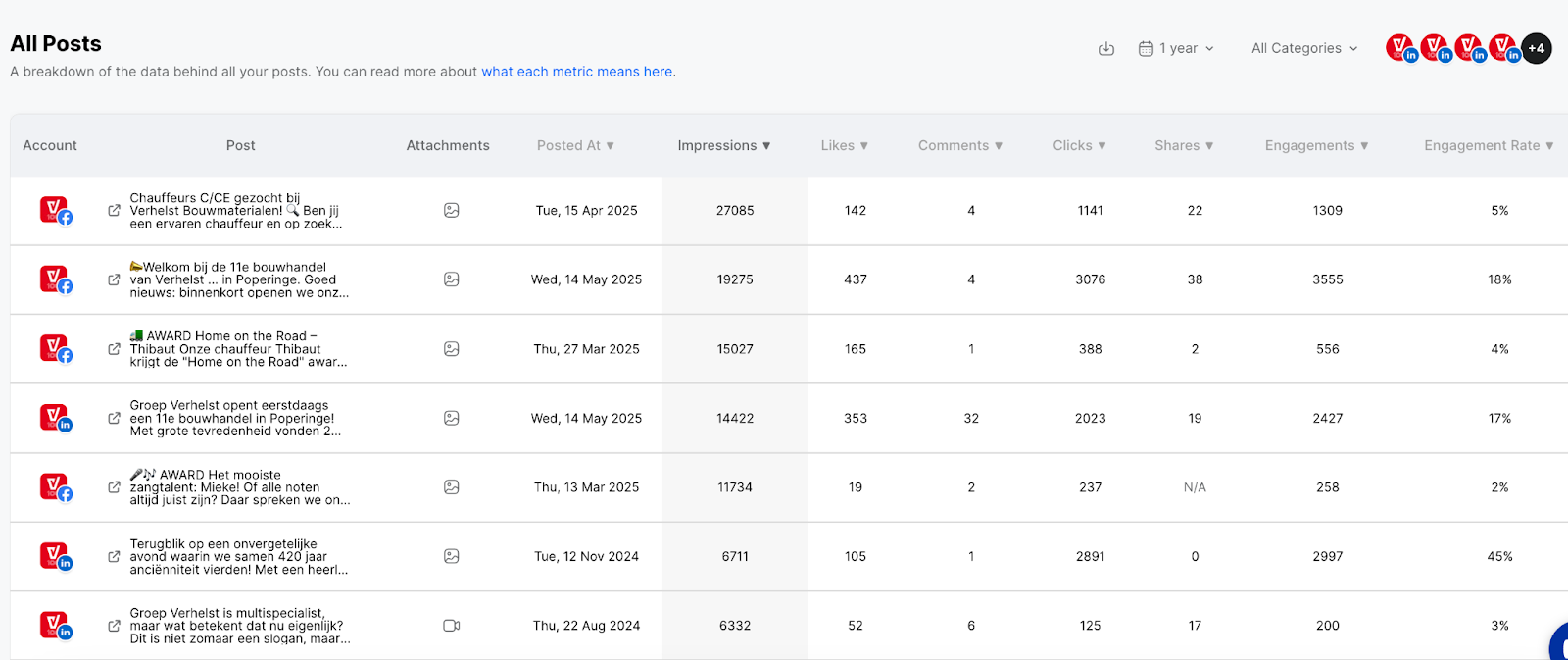 Whe we zoom in even more, on a post level, Verhelst has also achieved some almost mind-blowing results. Some posts reached thousands of people organically, boosted by shares from employees and consistent posting. One recent highlight: a post that reached nearly 17,000 people organically, both on LinkedIn and Facebook.